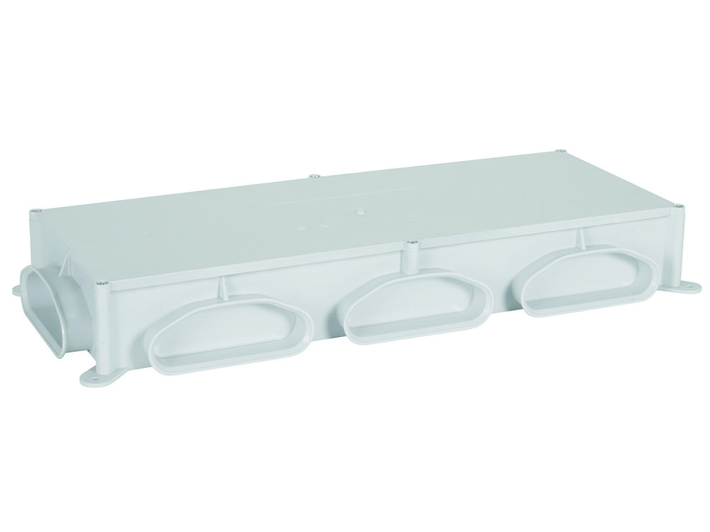 slúži k rozdeleniu hlavného potrubného vedenia na potrubný rozvod (prívod/odvod) IVAR.PROFI-AIR TUNNEL 5 x 132 x 52 mm hlavné potrubie IVAR.PROFI-AIR KANAL 2 x 163 x 68 mm materiál PS