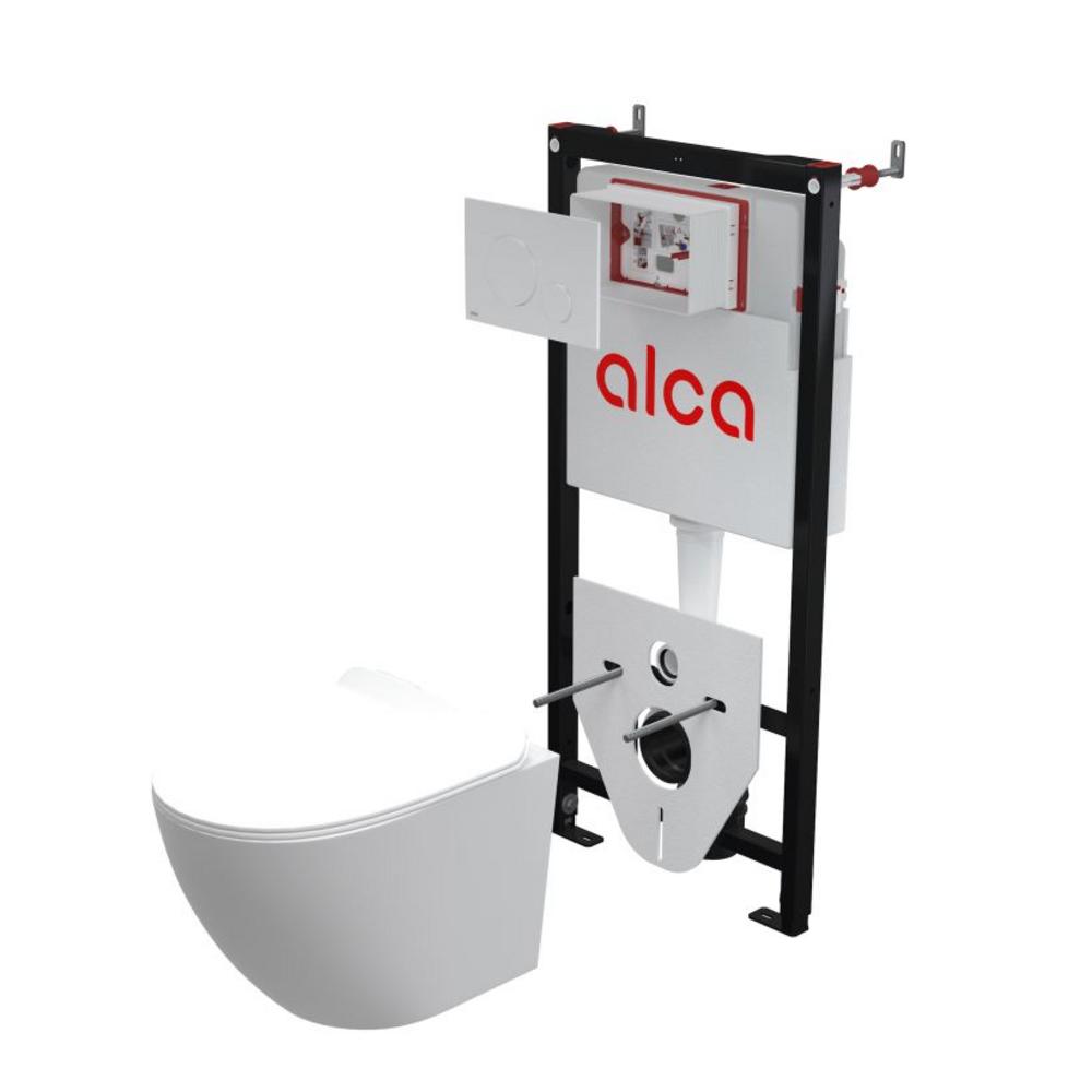 Inštalačný modul WC set 5v1 Alca Sadromodul SOLID /tlačítko M670+tesnenie M91+wc doska + WC celokapotované + modul/ aj do sadrokartonu Alca