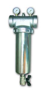 veľkosť filtra 10”/3000, PN 6, max. T = +40 °C pre filtrovanie mechanických nečistôt z pitnej vody mechanizmus pre ručné odkalenie materiál: hlava filtra – mosadz; nádobka – SAN; filtr. vložka - nerez rozmery: výška 430 mm, Ø 160 mm nutnosť napojenia na kanalizačný odpad montážny kľúč, kód