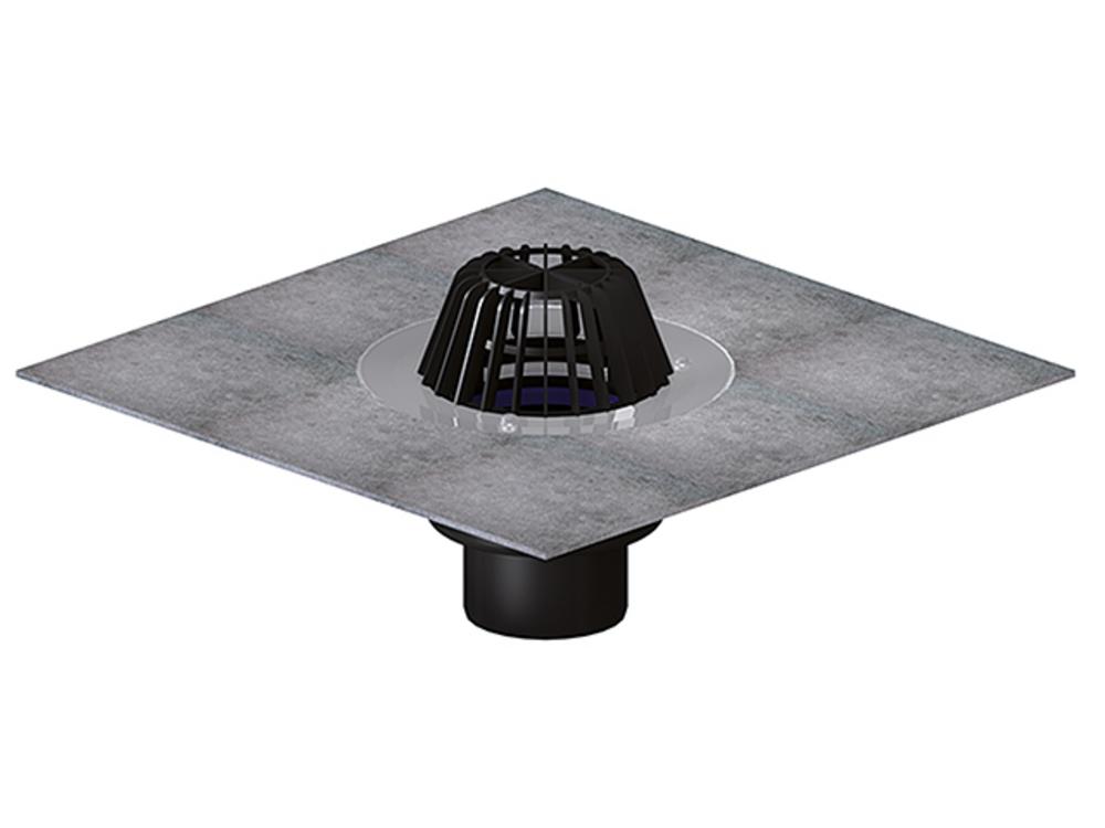 HL62H/1 Strešný vpust DN110 vertikálny, s tepelne izolovaným odtokom, samostatne regulujúcim ohrevom s priamym napojením na 230 V (10 - 30 W) , na vpust je priamo na závode navarený bitumenový límec d 500 mm (použitie pri izolovaní striech so živičnou izoláciou) a košíkom na nečistoty d 180 mm
