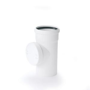 Čistiaci kus je vybavený tesnením s gumovým krúžkom, ktoré zabezpečuje rýchle, pevné a tesné spojenie bez potreby lepidla alebo iných tesniacich materiálov. Vyrobený je z mineralom spevnenej polypropylénovej zmesi, ktorá poskytuje vysokú odolnosť voči mechanickému poškodeniu, chemikáliám a teplotným zmenám. Biela farba (podobná RAL 9003) uľahčuje identifikáciu a dodáva čistý vzhľad potrubiu.