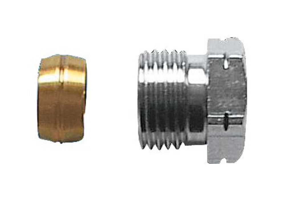 Prechodka na oceľovú a medenú rúru DN 12, kovovo tesniaca, skrutka 3/8 so svorkovým krúžkom
