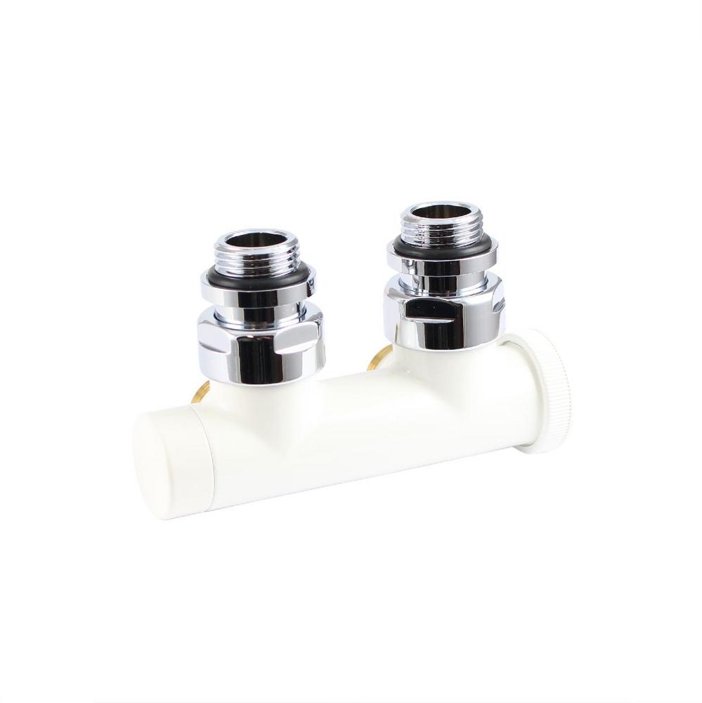 pre 1-rúrková sústavy, s integrovaným termostatickým zvrškom Prípojka na vykurovacie teleso vonkajším závitom G 1/2" s O-krúžkom, prevlečná matica k ventilu. G 1/2" Pripojenie na rozvod vonkajším závitom M 22x1,5 s kužeľovým tesnením. Osová vzdialenosť pripojenia 50 mm. Prechodky sa objednávajú samostatne. Vratné potrubie z vykurovacieho telesa (spiatočka) musí byť napojené pri termostatickom zvršku. Prívodné potrubie je napojené na druhom vývode bez termostatatického zvršku. Prevlečné matice pripájacieho dielu v bielom vyhotovení sú chrómovej farby.