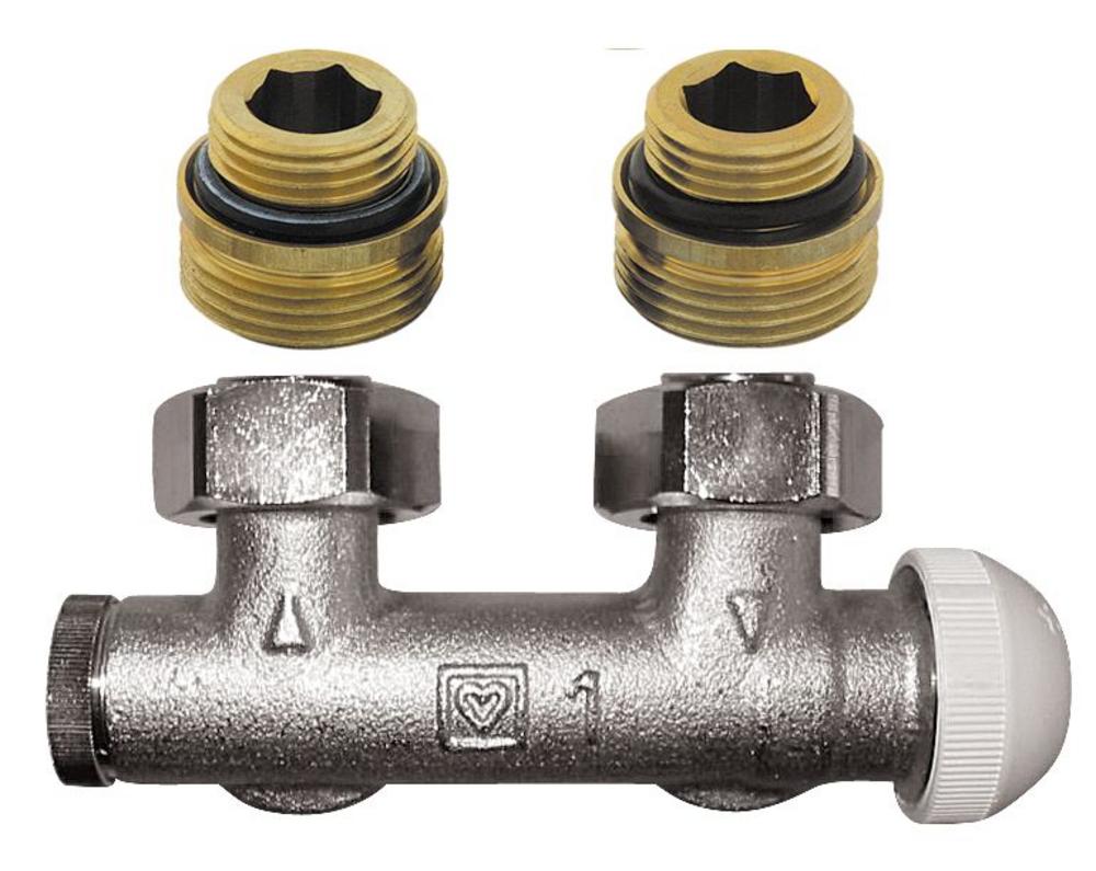 Bypas HERZ-3000 s intergovaným termostatickým zvrškom so závitom M 28 x 1,5, pre 1-rúrkové sústavy, rohový, pripojenie vyk. telesa Rp 1/2", pripojenie na rúru vonk. závitom G 3/4" s kužeľ. Tesnením