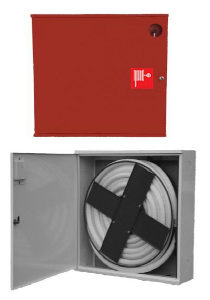 Hydrantový systém vyrobené v zmysle STN EN 671-1 sa skládá: - oceľová skrinka a dvierka - hadicový navijak (bubon) - tvarovo stála hadica DN25/30 - prítokový ventil G 1 " so spojovacou hadicou - uzatvárateľná prúdnica s priemerom trysky 10mm Montáž zariadenia je možná: - na stenu - zapustiť do steny