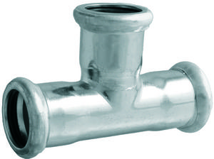 PN 16, T = -20 °C až +85 °C - max. +120 °C T-kus 90° jednoznačný PRESS × PRESS × PRESS účel použitia: pre vykurovacie systémy, sprinklerové trvalo zavodnené systémy, tlakový suchý vzduch, solárne systémy, inertné plyny a priemysel materiál: uhlíková pozinkovaná oceľ,