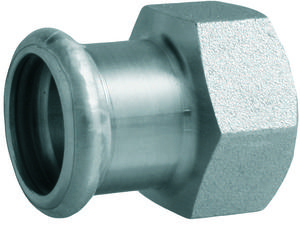 PN 16, T = -20 °C až +85 °C - max. +120 °C prechodka s vnútorným závitom PRESS × ZÁVIT účel použitia: pre vykurovacie systémy, sprinklerové trvalo zavodnené systémy, tlakový suchý vzduch, solárne systémy, inertné plyny a priemysel materiál: uhlíková pozinkov