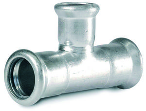 PN 16, T = -20 °C až +85 °C - max. +120 °C T-kus 90°jednoznačný PRESS × PRESS × PRESS účel použitia: pre zdravotne technické inštalácie, sprinklerové systémy, vykurovacie systémy, tlakový vzduch, solárne systémy, inertné plyny a priemysel materiál: nerezová oceľ triedy Wst.