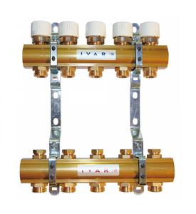 - zostava obsahuje: rozdeľovač s regulačnými šróbeniami, zberač s uzatváracími ventilmi, upevňovacie konzoly