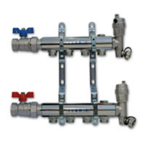 - zostava obsahuje: rozdeľovač a zberač, upevňovacie konzoly, vstupné guľové uzávery, ukončenie s automatickým odvzdušňovacím ventilom a otočným vypúšťacím ventilom a zátky