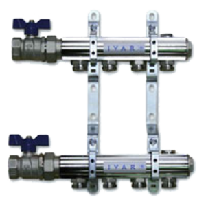 - zostava obsahuje: rozdeľovač a zberač, upevňovacie konzoly, vstupné guľové uzávery a zátky