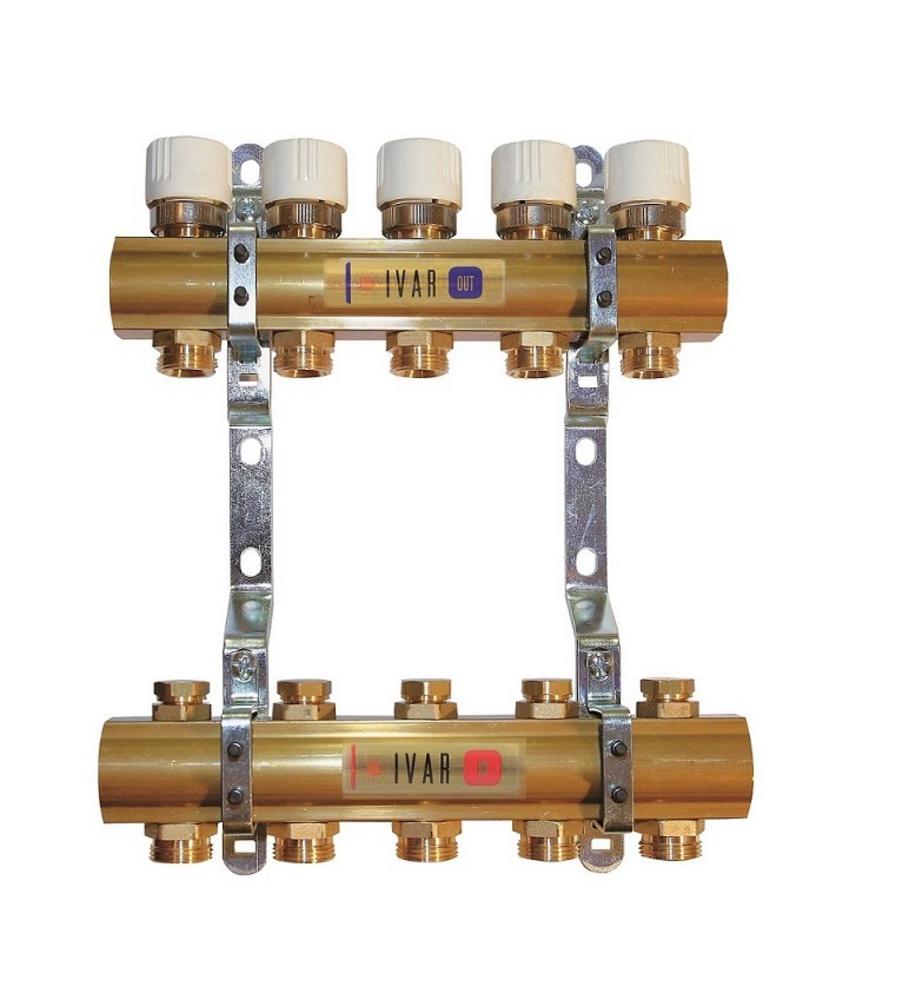 - zostava obsahuje: rozdeľovač s regulačnými šróbeniami, zberač s uzatváracími ventilmi, upevňovacie konzoly