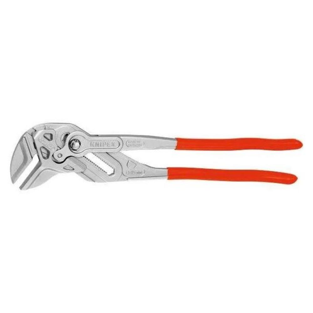 Kliešte, kliešte a kľúč na skrutky v jednom nástroji - patentované Ideálny na uchopenie, držanie, stláčanie a ohýbanie dielov Na šetrnú montáž povrchovo upravených armatúr Žiadne poškodenie hrán na chúlostivých tvarovkách vďaka celoplošnému podopretiu bez vôlí Rýchle nastavenie stlačením gombíka priamo na upnutom komponente Žiadne neúmyselné premiestňovanie čeľustí a žiadne skĺznutie kĺbu Nahrádza kompletnú sadu skrutkových kľúčov Hladké nastavenie všetkých veľkostí kľúčov až do určenej kapacity pomocou paralelných čeľustí Zdvih medzi čeľusťami umožňuje rýchle uťahovanie a povoľovanie skrutkových spojov na princípe západkového mechanizmu Veľmi silný úchop vďaka 10-násobne väčšej sile ruky Vhodné a použiteľné aj na štiepanie obkladačiek