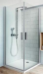 Čtvercový sprchový kout s jednokřídlými dveřmi a pevnou stěnou