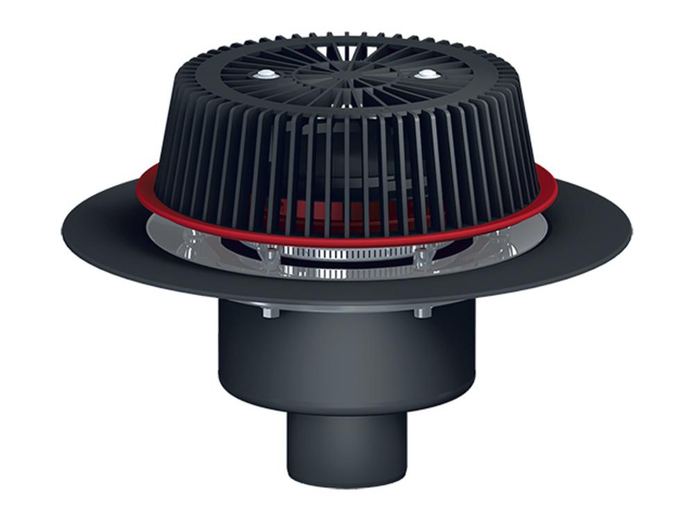 HL62.1Safe/5 Bezpečnostný - strešný vpust vertikálny s mechanickou prírubou na ukotvenie hydroizolácie s ohrevom, DN160 a 28-68mm výškovo nastaviteľnou prepadovou hranou.