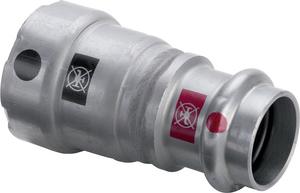 Megapress -přechodový kus s SC-Contur - pro následující produkty a použití: ocelové trubky podle DIN EN 10220/10255, Prestabo - nelegovaná ocel, povrchová úprava zinkem a niklem - lisovací přípoje Vybavení těsnění EPDM, zářezný kroužek, dělicí kroužek model 4213 artikl 718 817 osvědčení VdS DN: 32 D: 11 d: 35