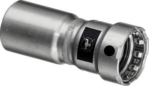 Megapress -redukce s SC-Contur - pro následující produkty a použití: ocelové trubky podle DIN EN 10220/10255 - nelegovaná ocel, povrchová úprava zinkem a niklem - zásuvný konec, lisovací přípoj Vybavení těsnění EPDM, zářezný kroužek, dělicí kroužek model 4215.1 artikl 695 408 DN1: 25 D1: 1 DN2: 15 D2: 1