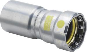 Megapress G -redukce s SC-Contur - pro následující produkty a použití: ocelové trubky podle DIN EN 10220/10255 - nelegovaná ocel, povrchová úprava zinkem a niklem - zásuvný konec, lisovací přípoj Vybavení těsnění HNBR, zářezný kroužek, dělicí kroužek model 4615.1 artikl 739 898 DN1: 40 D1: 11 DN2: 20 D2: 3