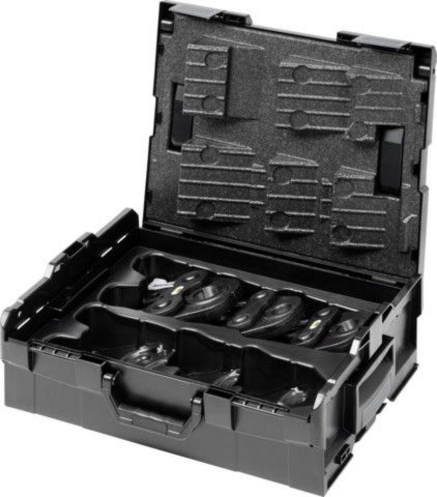 - doporučeno pro Pressgun 6 Plus, Pressgun 6, Pressgun 6 B, Pressgun 5, Pressgun 4B, Pressgun 4E, lisovací nástroj PT3-H/EH, PT3-AH, lisovací nástroj typ 2 (PT2), lisovací nástroje Geberit/Mepla, typ PWH 75, typ N 230 V a N akumulátorový, lisovací nástroje Geberit/Mapress, typ EFP II, ACO 1, ECO 1, ACO 201, ECO 201, AFP 201, EFP 201, ACO 202 a ECO 202, Ridgid lisovací nástroje RP 10-S, RP 10-B, RP 330C/330B, RP 340 - ve výbavě: vložka do víka model 2202.60, vložka do kufru lisovací čelisti PT2 model 2202.1, systémový kufr model 2202, lisovací čelist PT2 artikl 638 221, 638 238, 638 245 model 2202.31