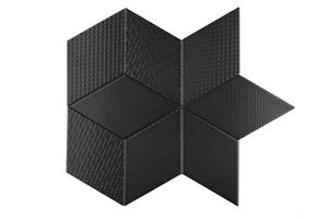 Kolekcia Rombic je dostupná v dvoch farbách – Matný obklad čierna a biela sú dostupné v štyroch verziách: plochá a v troch geometrických vzoroch. Porcelánové obklady z kolekcie Rombic sa odporúčajú najmä na obloženie stien.