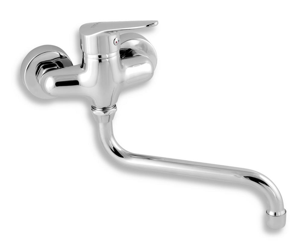 Vodovodná batéria drezová nástenná páková chrómová rozteč: 100mm ramienko 22,5cm, guľaté Titania Iris Novaservis