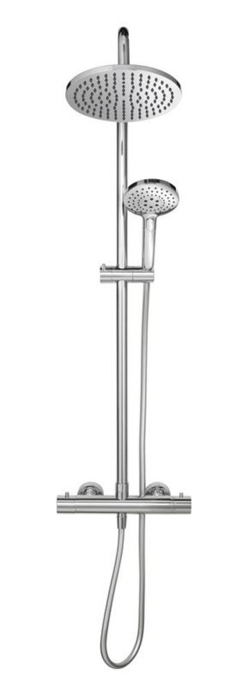 Sada obsahuje: sprchovú termostatickú batériu, držiak na stenu, kruhovú hlavovú sprchu, sprchovú ružicu a sprchovú hadicu.