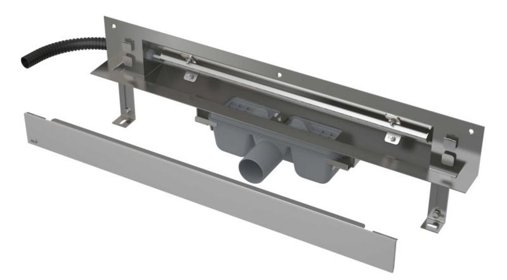 Podlahový žľab s BIELYM podsvietením pre zabudovanie do steny pre šírku kútu 800 Alca APZ5-SHADE-750+AEZ120 matný
