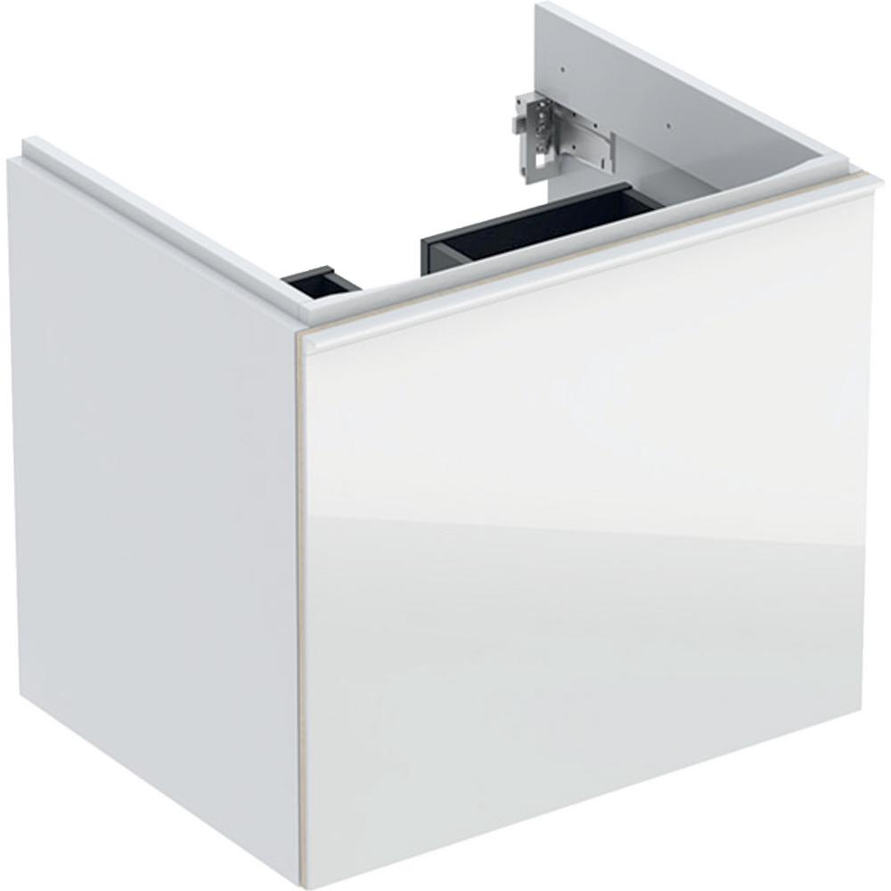 Skrinka Geberit Acanto pod umývadlo, s jednou zásuvkou a vnútornou zásuvkou, fľašová zápachová uzávierka s nornou rúrkou: B=59.5cm, H=53.5cm, T=47.5cm, lakovaný s vysokým leskom/biely, lesklé sklo/biele