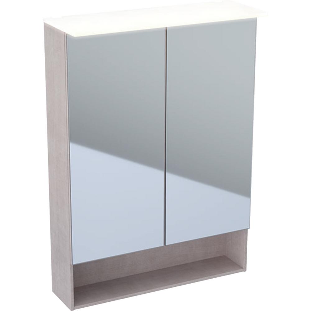 Zrkadlová skrinka Geberit Acanto s osvetlením a dvomi dvierkami: B=60cm, H=83cm, T=21.5cm, dub mystik/melamínová drevená štruktúra, zvonka zrkadlové