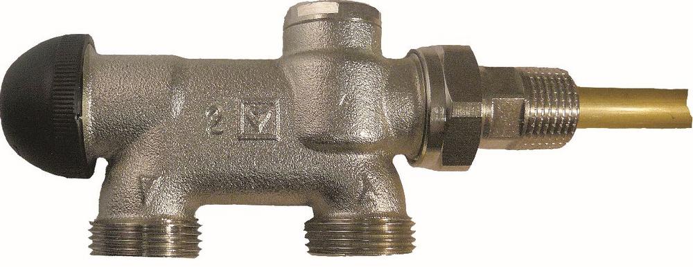 Štvorcestný termostatický ventil HERZ-VTA-50 DN 15, pre 2-rúrkové systémy, priamy, prednastaviteľný termostatický zvršok, pripojenie na VT ponornou rúrou 290 mm x 11mm, závit pre termostatickú hlavicu M 30 x 1,5