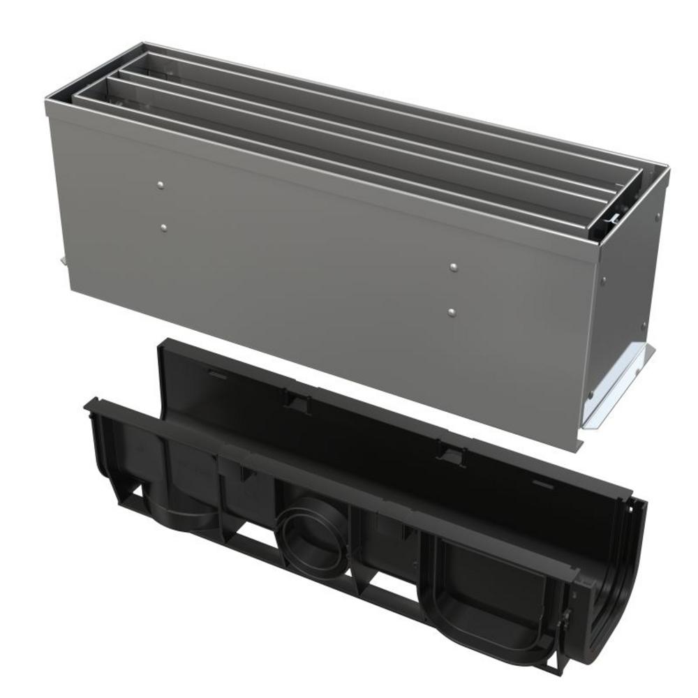 Špecifikácia: Četné žebrování pro pevnou fixaci v okolním materiálu Materiál revizního nástavce: nerezová ocel AISI 304, DIN 1.4301, ČSN 17240 Materiál žlabu s UV stabilizátorem proti stárnutí, blednutí a degradaci plastu Materiál žlabu: polypropylen plněný mastkem odolný proti mechanickému, chemickému a tepelnému poškození Modulární systém - volitelné napojení do tvaru „I“, „L“, „T“ nebo „X“ Příp
