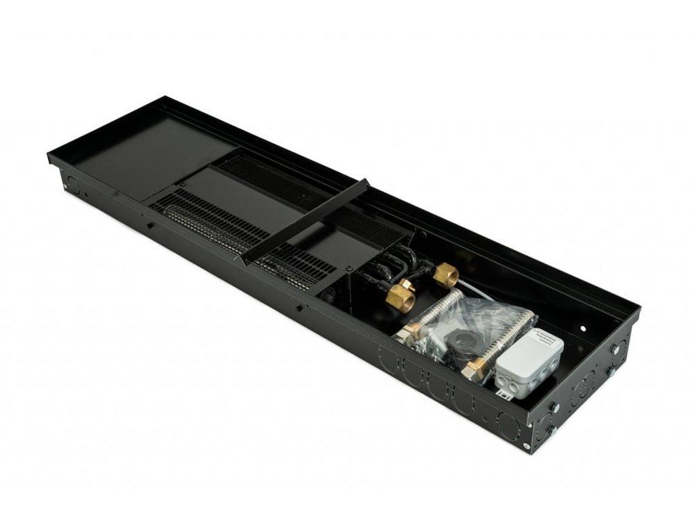 Podlahové konvektory InFloor F1T představují ekonomicky efektivní variantu se zvýšeným tepelným výkonem, nízkou hlučností a s minimálními provozními náklady. InFloor F1T používá tangenciální ventilátory s EC motory, které přinášejí vysoký tepelný výkon a nízké provozní náklady. Tepelný výkon konvektorů InFloor F1T je limitován provozním režimem ventilátoru a výměníkem tepla v závislosti na rozměrech vany konvektoru. Ventilátor má optimalizovanou délku tak, aby ofukoval maximální část výměníku. Z hlediska použití výrobek plnohodnotně zajišťuje funkci vytápění i jako jediný zdroj tepla ve vytápěném prostoru. Tepelný výkon konvektoru je regulován na straně vzduchu regulačními prvky z široké nabídky standardního příslušenství a může být regulován i na straně vody, tak jako konvektor FMK. Standardní dodávka InFloor F1T obsahuje: - vanu z pozinkovaného plechu, lakovaného v černé barvě RAL 9005