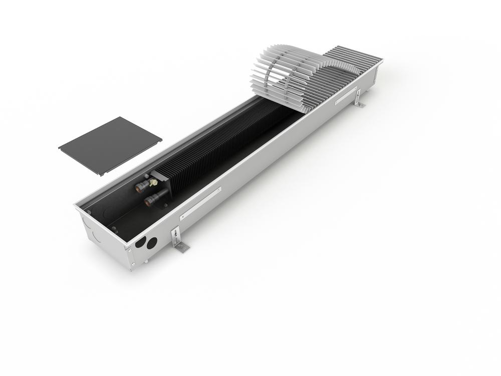 Podlahové konvektory New Practic s přirozenou konvekcí (FRK) se instalují pod celoplošná prosklení budov. Konvektory tvoří tepelnou clonu pro odstínění proudu chladného vzduchu z okenní plochy. Část teplého vzduchu proudí do místnosti a vytápí obytné prostory. Konvektory jsou standardně využívány jako doplňkové vytápění k ostatním typům vytápění. Pokud dostačuje tepelný výkon konvektoru, lze je ta