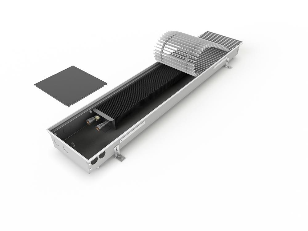 Podlahové konvektory New Practic s přirozenou konvekcí (FRK) se instalují pod celoplošná prosklení budov. Konvektory tvoří tepelnou clonu pro odstínění proudu chladného vzduchu z okenní plochy. Část teplého vzduchu proudí do místnosti a vytápí obytné prostory. Konvektory jsou standardně využívány jako doplňkové vytápění k ostatním typům vytápění. Pokud dostačuje tepelný výkon konvektoru, lze je ta