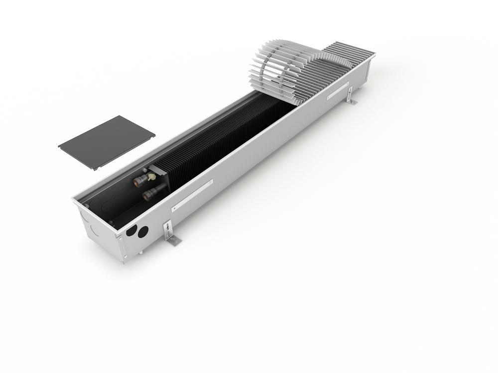 Podlahové konvektory New Practic s přirozenou konvekcí (FRK) se instalují pod celoplošná prosklení budov. Konvektory tvoří tepelnou clonu pro odstínění proudu chladného vzduchu z okenní plochy. Část teplého vzduchu proudí do místnosti a vytápí obytné prostory. Konvektory jsou standardně využívány jako doplňkové vytápění k ostatním typům vytápění. Pokud dostačuje tepelný výkon konvektoru, lze je ta