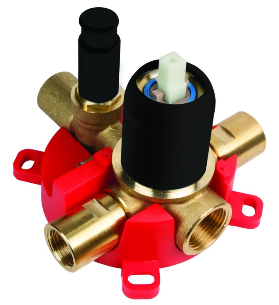 pre podomietkovú rozetu série ELITE, PROJECT, FRESH, INFINITY. LINO - podomietková časť (2 vývody ) pre jednopákovú vaňovú batériu - vstupy: teplá voda - 1/2", studená voda - 1/2'' - výstupy: 1 x 1/2" a 1 x 3/4' - čast urcená pre zabudovanie pre kartušu priemeru 40 mm