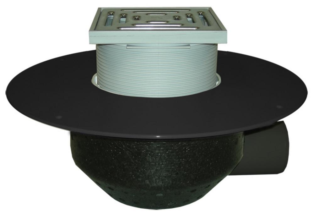 HL64BF/7 Strešný vpust DN75 horizontálny s tepelne izolovaným telesom, PP límcom navariteľným na FPO fólie na PP báze, pochôdzny so skrátiteľným nadstavcom 12 - 65 mm/150 x 150 mm a nerezovou vtokovou mriežkou 138 x 138 mm. Stavebná krytka je súčasťou dodávky.