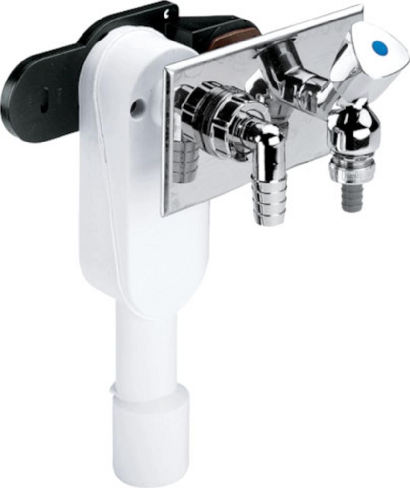 Zápachový uzávěr - pro následující produkty a použití: zabudování do stěny, hadice na odpadní vodu z pračky nebo myčky nádobí - plast - integrovaný přívod vody Vybavení ventil se zpětnou klapkou a přivzdušňovačem trubek, montážní kolejnice, krycí deska z ušlechtilé oceli, pochromované hadicové šroubení 90° kontrola jakosti podle DIN 19541