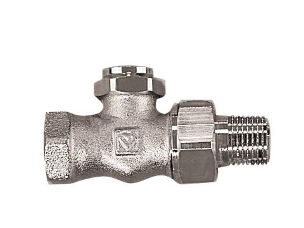Ventil do spiatočky HERZ-RL-5 DN 10, priamy, s prednastavením, s možnosťou napúšťania, vypúšťania a uzavretia, prípojka na vykurovacie teleso s kužeľovým tesnením, pripojenie na rúru univerzálnym hrdlom