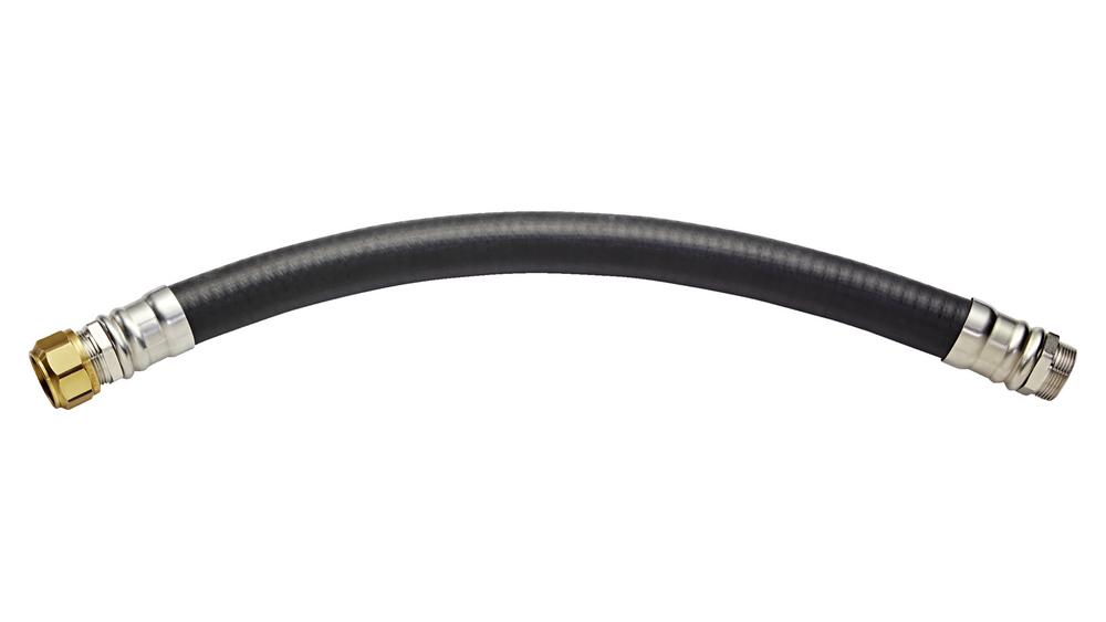 Popis • Neizolovaná tlaková hadica pre prívodné vedenie soľanky a spiatočku soľanky je na jednej strane vybavená skrutkovacou prípojkou a na druhej strane zvieracím skrutkovým spojom.