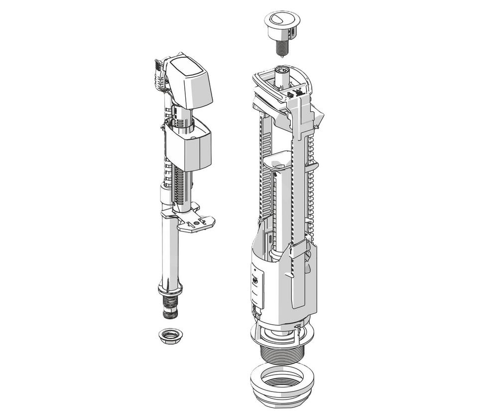 Splachovací mechanizmus k WC kombi, biela farba: biela materiál: plast spodné napúšťanie vody vhodné do nádržky k WC kombi Lyra Plus