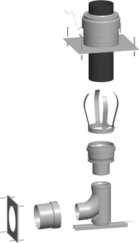 pro připojení kaskády kotlů, obsahuje: kryt šachty DN 160 včetne trubky vyústění, 6 distančních držáků DN 160, redukce DN 110 na DN 160, opěrné koleno 87° DN 110 s podpěrou /místo podpěry se na podepření může použít spalinová trubka příslušné délky/, přec