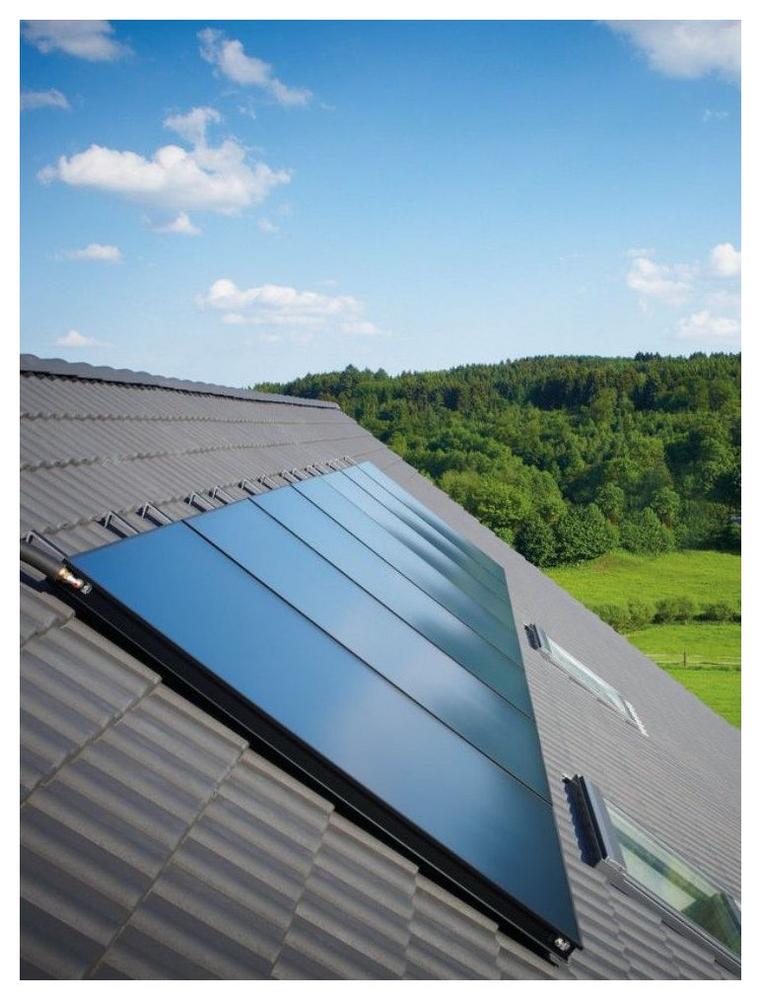1 ks plochý kolektor VFK 135 VD Nastaviteľné uhly: sklon strechy + 20°, + 30° štandardná krytina (všetky uchytenia a prepojenia)