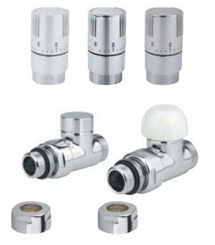 Sada č. 111 / nerez / Obj. kód: O39NPC-111 Připojení na měděné trubky o 15 mm Termostatická hlavice / nerez Přímý termostatický ventil a šroubení / nerez Svorné šroubení pro měděné trubky / nerez
