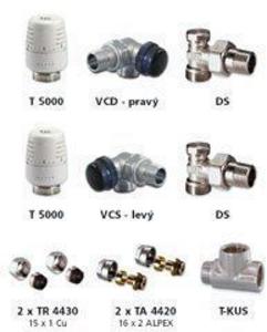 SADA VCDT 1/2"xEK-15x1 PRAVÁ zložená z term. hlavica T5000, term. ventil VCD-PRAVY, spiatočka DS, 2xšrobenie TR4430, T-kus