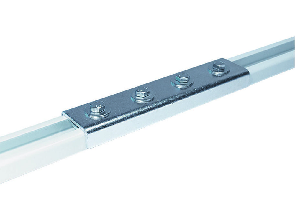 prvek pro spojování nosníků o šířce 40 mm materiál - ocelový profil, tl. 3 mm, délka 200 mm, závity M8 povrchová úprava – galv. zinek OBSAH SOUPRAVY