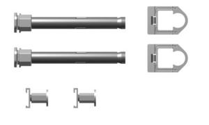 Set pozostáva z: - 2 držiaky, - 2 bezpečnostné strmene, - 2 rozpierky