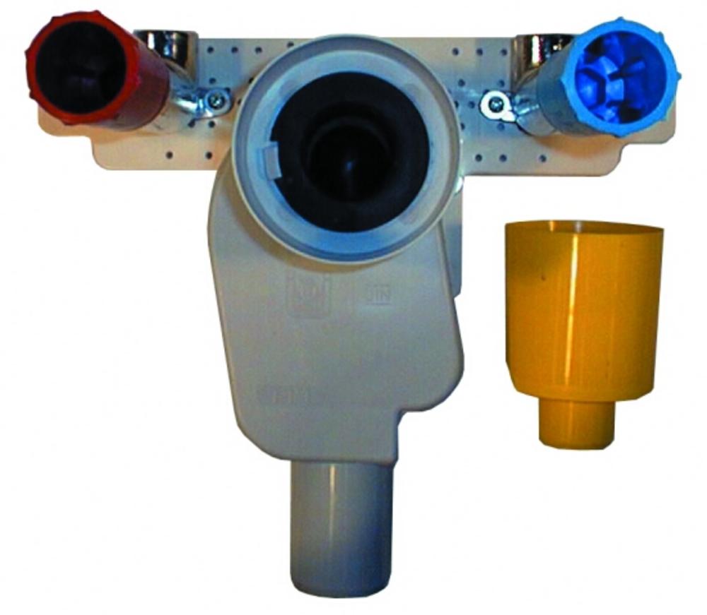 HL134/50 Umyvadlová pripojovacia montážna sada DN50 pozostávajúca z umývadlového zabudovateľného zápachového uzáveru HL134.0/50 a montážnej platne HL44, 2 ks. Mosadzné kolienka a stavebné zátky HL42