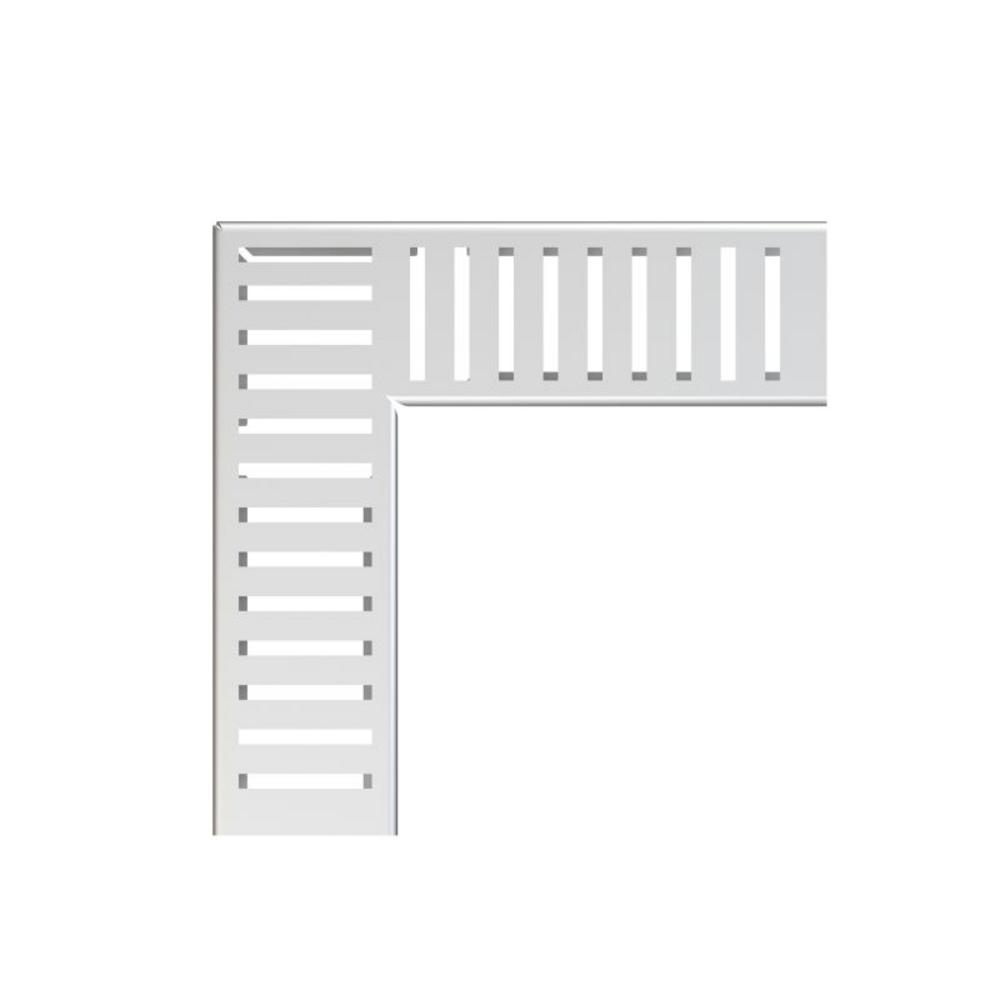 Rošt pre drenážny žľab rohový 75 mm, nerez Pre drenážny žľab ADZ301VR Fixačné čapy – zabezpečujú dokonalé upevnenie roštu v žľabe a eliminujú zvukový efekt počas používania žľabu Materiál roštu: nerezová oceľ AISI 304, DIN 1.4301 Profil roštu „C“