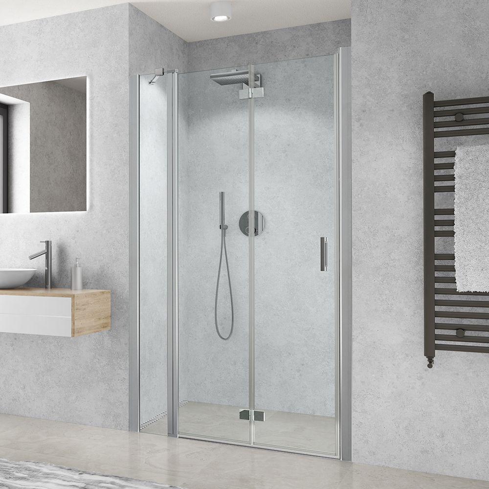 Otočný profil Brillant umožňujúci zloženie dveríTieto dvere majú profily z ušľachtilého hliníka v prevedení Brillant. Výplne bezpečnosních skiel ponúkame v nadčasovom prevedení Transparent (číre sklo). Produkt disponuje skladacími dverami, vďaka ktorým si zaistíte ešte širšie a pohodlnejšie vstup do sprchy. Skladacie dvere je možné zložiť úplne k stene vďaka otočným stenovým profilom.
